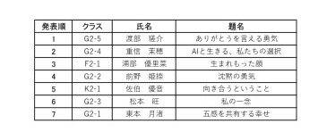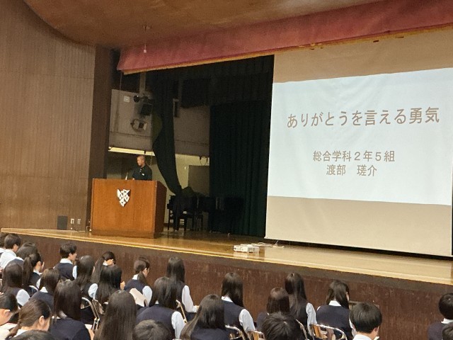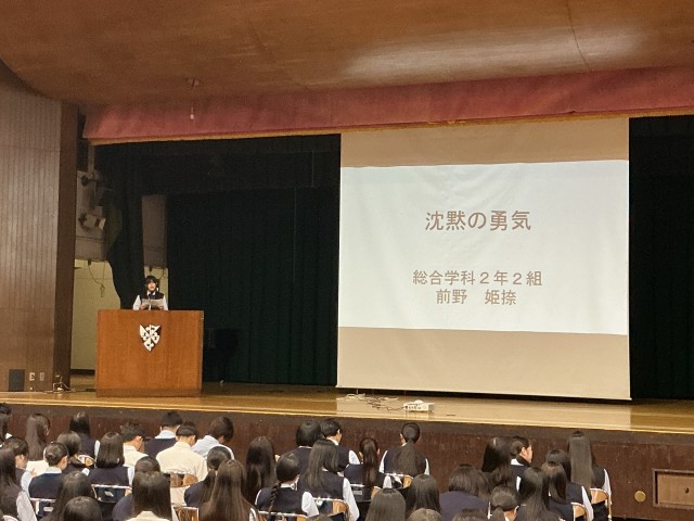 10月20日、2年部の合同弁論大会が開催されました。どの生徒も担任の先生と一緒に放課後を利用して、自主練習に励んでいました。実行委員の生徒たちも打ち合わせを何回も重ね、素晴らしい進行で大会の運営を支えてくれました。