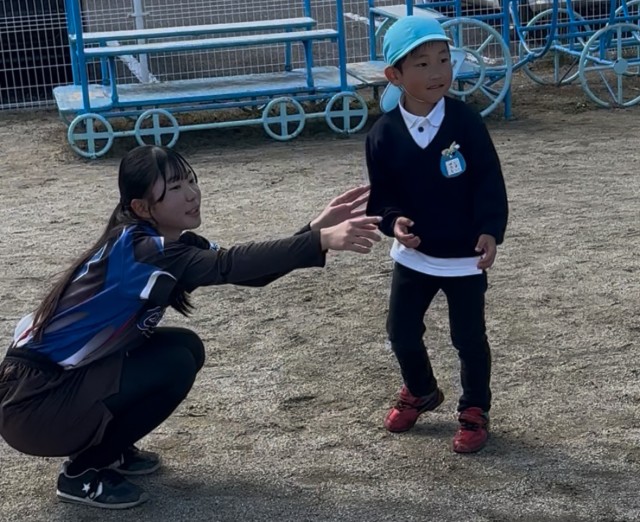 秋晴れの中,年長児童も本校生徒も笑顔で、「キッズファーストアクション」を終えることができました。