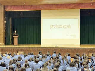 始業式の後は、教務課長・生徒課長による全体指導を実施しました。