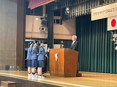 聖カタリナ学園高等学校への入学、おめでとう。教職員一同、心から歓迎しています。