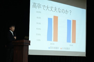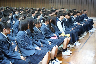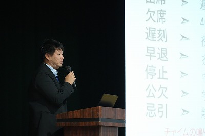 オリエンテーションでは、校長講話に続き、教務・生徒指導・進路指導の各担当から、高校生活を送る上での大切な心構えについて説明がありました。